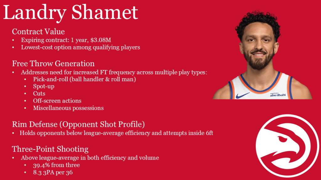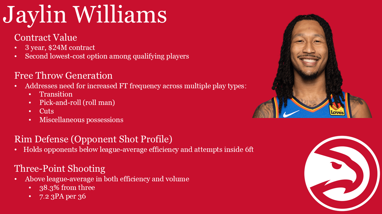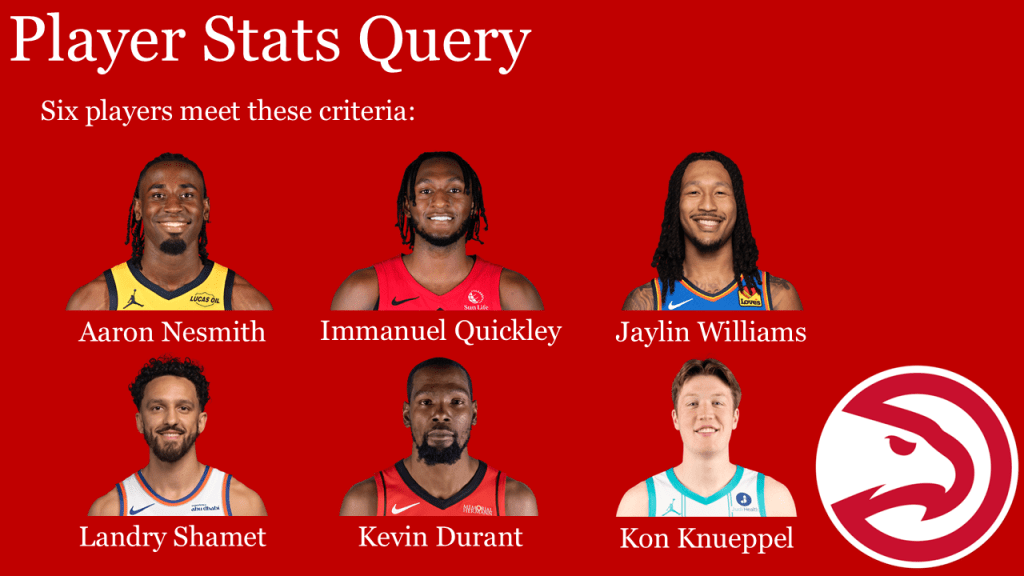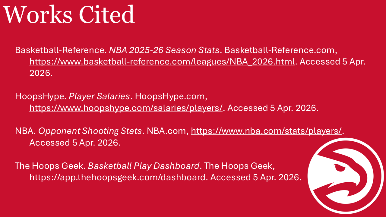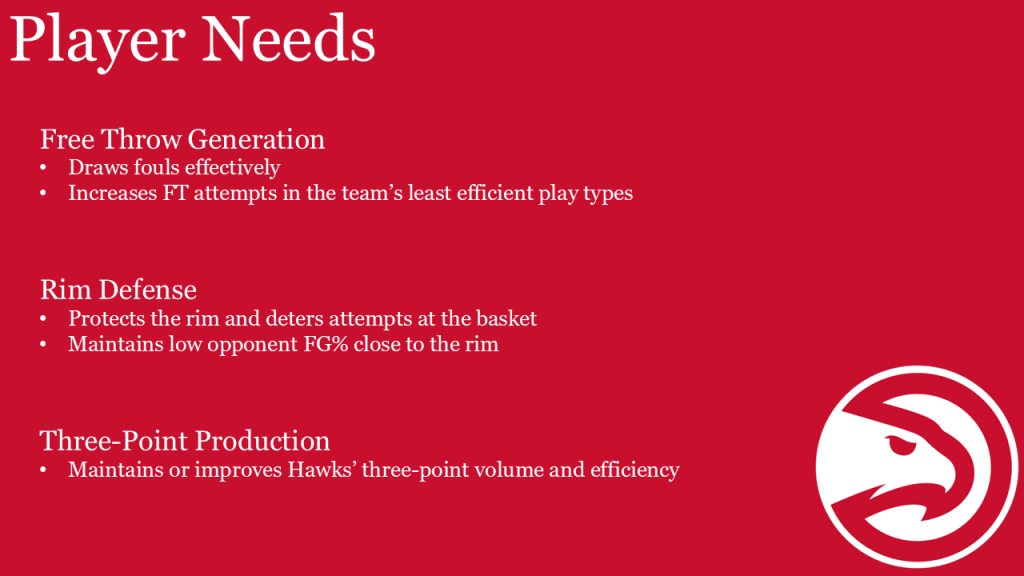 The goal of this project was to analyze the Atlanta Hawks as an emerging NBA team and evaluate potential roster and trade needs.